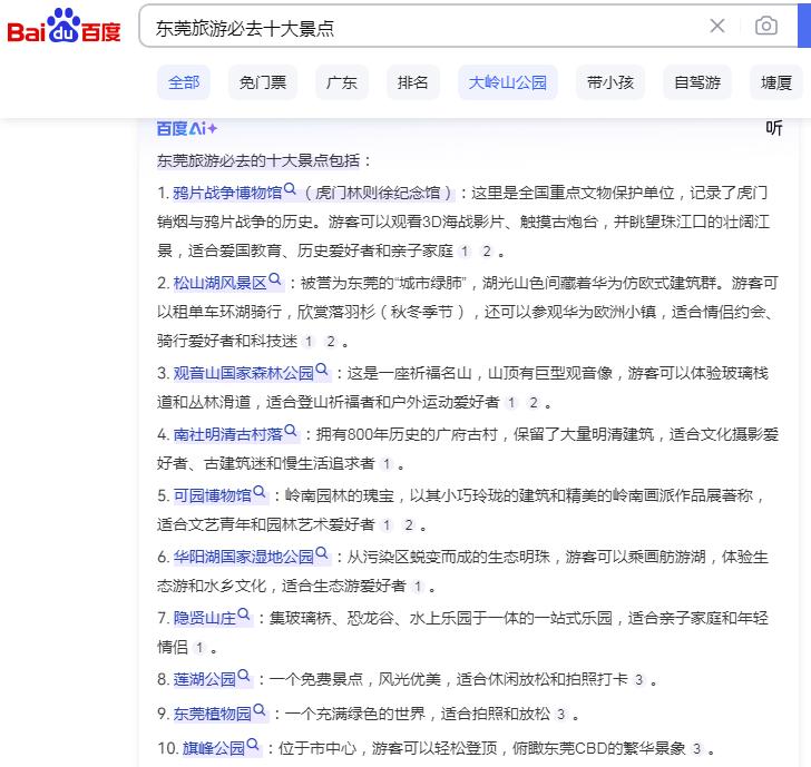 百度搜索:“东莞旅游必去十大景点”,观音山国家森林公园排在第三。